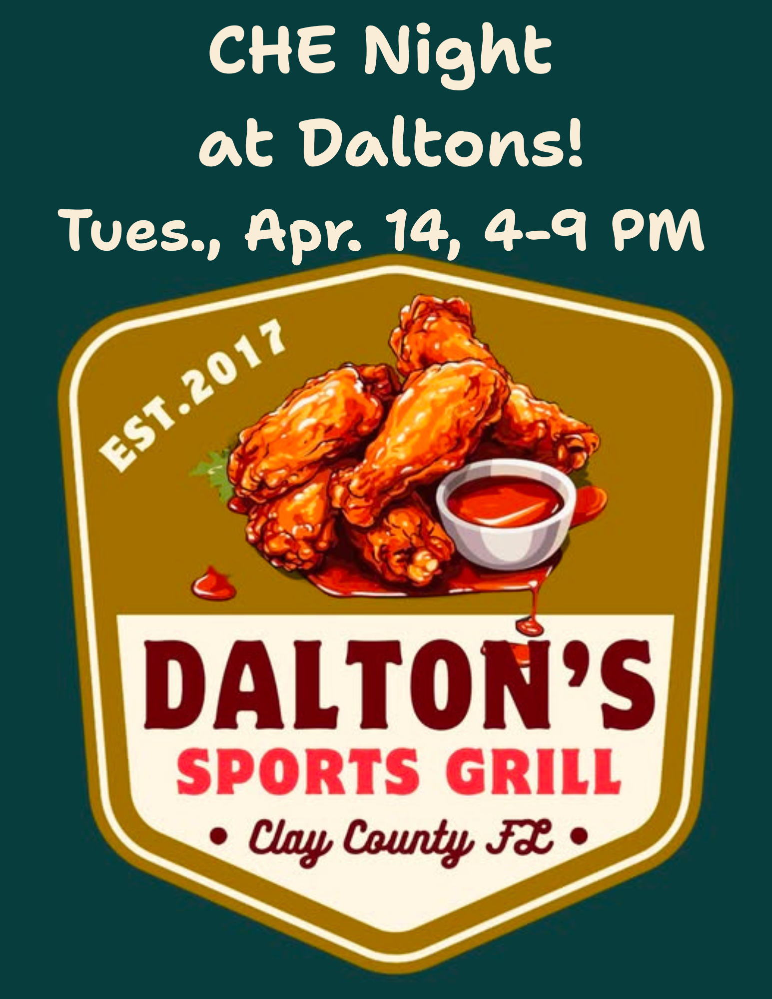 Tuesday, Apr. 14: -Math Team Practice, 2:45-3:45 pm -CHE Night at Dalton's Sports Grill, 4-9 PM