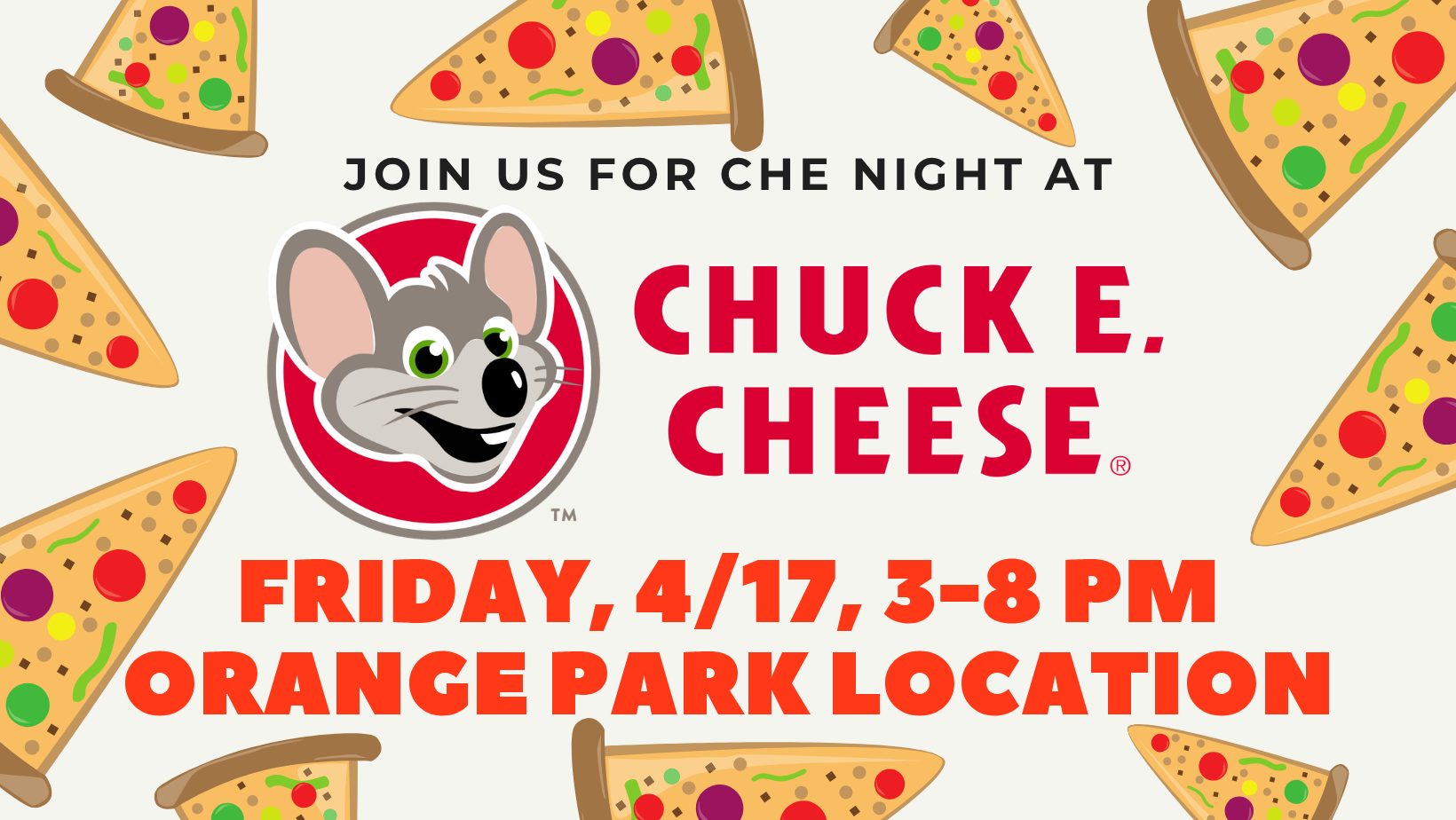 -Spirit Day: Represent a favorite Cartoon Character! -Chuck E. Cheese Night, 3-8 PM