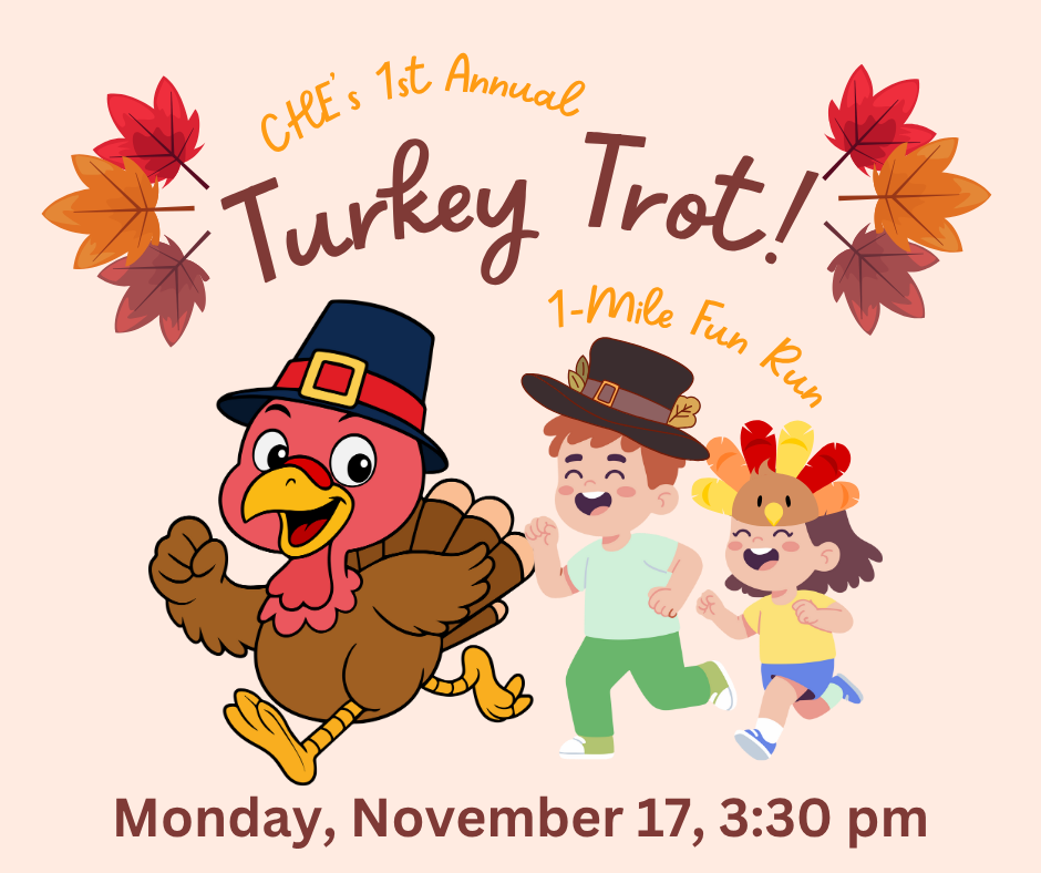 I hope you're having a wonderful weekend! We have a busy and exciting week ahead, packed with events, including picture retakes on Monday, as well as our first annual Turkey Trot! This fun run encourages fitness, community spirit, and an opportunity to support first grade's grade's Pet Supply Drive. Toward the end of the week, students in various grades will be engaged in wonderful Thanksgiving-themed activities. Be sure to come out and skate with us on Friday from 5:00 PM to 7:30 PM at Skate Station of Orange Park! This is a fantastic opportunity for our families to connect and have some fun together before the holiday next week.