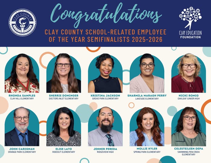 Team CHE couldn't be more proud than we are of Mrs. Rhonda Samples, as she was recently named a top ten semifinalist for the Clay County School District's 2025 School-Related Employee of the Year! Mrs. Samples has served the students of Clay Hill Elementary for almost three decades and continues to inspire learning and collegiality among our students and staff every day. She will be recognized at the December School Board meeting and again at the district's annual Apple Awards on January 22nd. We love you, Mrs. Samples!