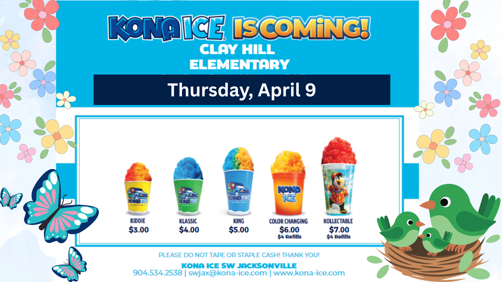 Thursday, Apr. 9: -Kona Ice -Snack Shack / Pizza Day -Early Release, 11:45 am