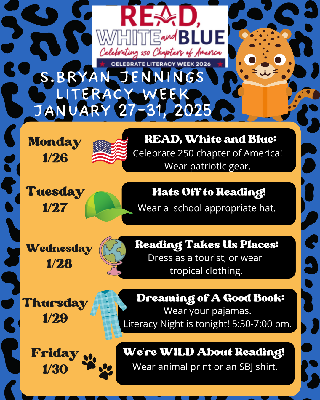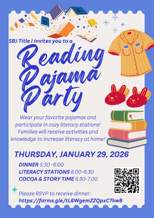 P.S. Have you RSVPed for our Reading Pajama Party yet? Don't forget! We want to make sure dinner is provided for you and your family! See the flyers below.